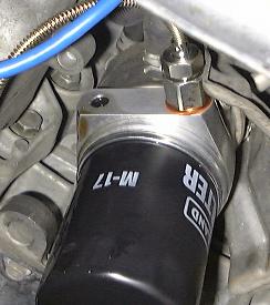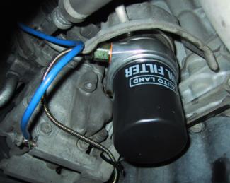 結局,27mmのコマでゆっくり閉めることにしました.ま,これぐらいの大きさになると1mmぐらい緩くても大丈夫なもんです.オイルブロックがついたら,さらにオイルフィルターを取付けます.あとは,センサーが駆動系に接触しないようにうまく取り回して完成.今回はセンサーが2.5mのものを使ったんですが,ちょうどぴったりの長さでした.