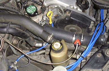 取りつけ自体は,油温計なんかに比べるとかなり簡単です.まず新品のアッパーホースを切ってジョイントを付け,クーラントを1リッターほど抜いてからアッパーホースを交換します.ホース自体はクランプで止まっているだけですが,固着していたので今回は切って外しました.あとは同じようにホースを付けて,センサーを取りつけてから,抜いたクーラントを戻せばOK.写真の右側に見えている赤いのが,センサー用ジョイントです.ホースに切れ込みが入っていて,バンドで止めてありのが見えると思います.