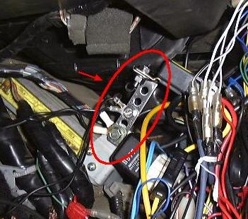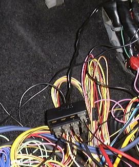 ECUのリレー部に,L字金具をつけた所.でもこれだとカバーがきちんとしまらないかも.L字金具の上のほうについているのは,バッ直用のリレーです.それにしてもものすごい配線だ・・・(^^;